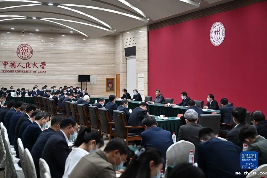 4月25日上午,中共中央总书记、国家主席、中央军委主席习近平来到中国人民大学考察调研。这是习近平同师生代表座谈并发表重要讲话。新华社记者 谢环驰 摄