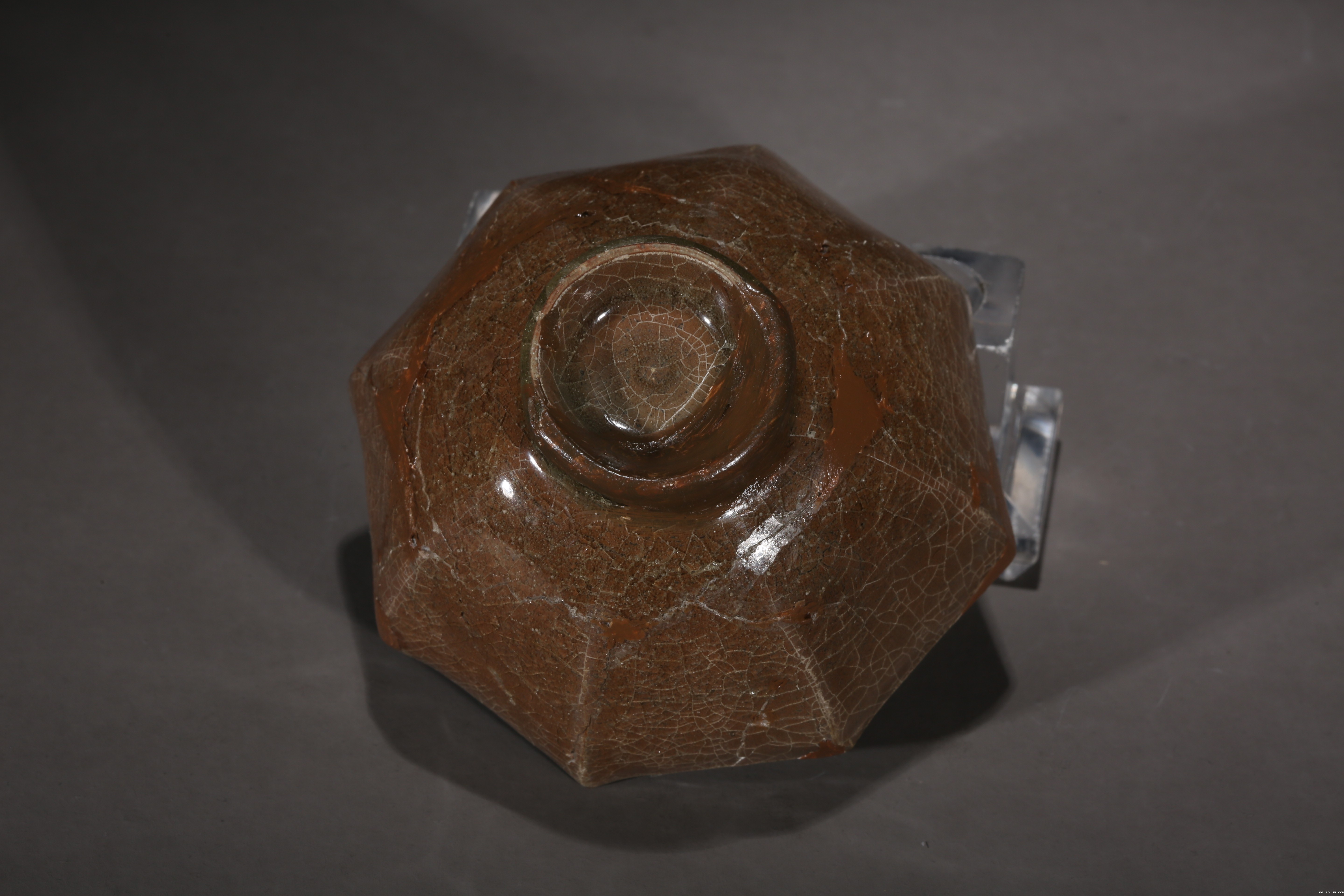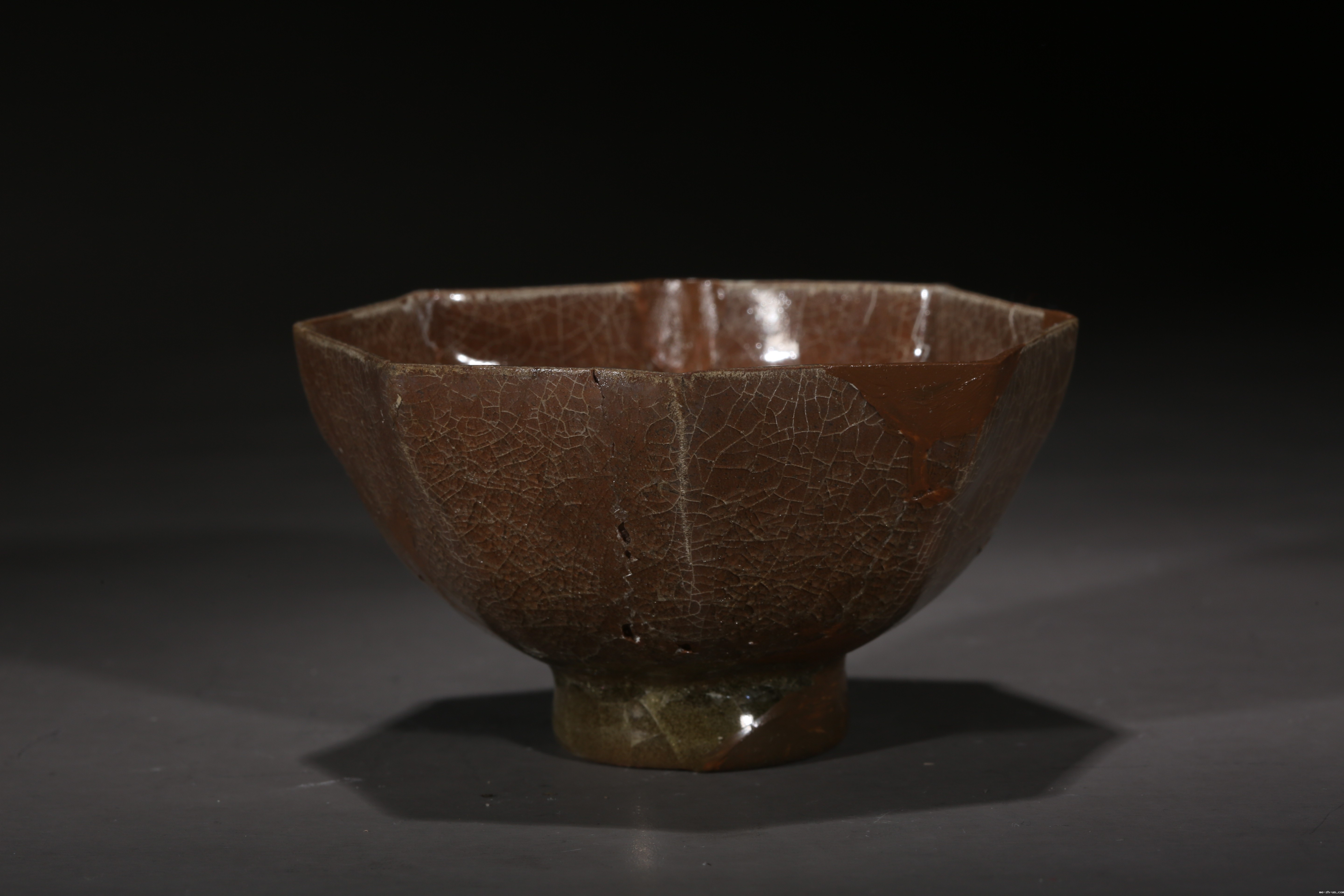 “哥窑”名列宋代五大名窑,在陶瓷史有举足轻重的地位。哥窑胎多紫黑色、铁黑色、也有黄褐色。釉色以炒米黄、灰青多见,釉面大小纹片结合,称金丝铁线、紫口铁足。器形有各式瓶、炉、尊、洗及碗、盆、碟等,多见仿古造型。
