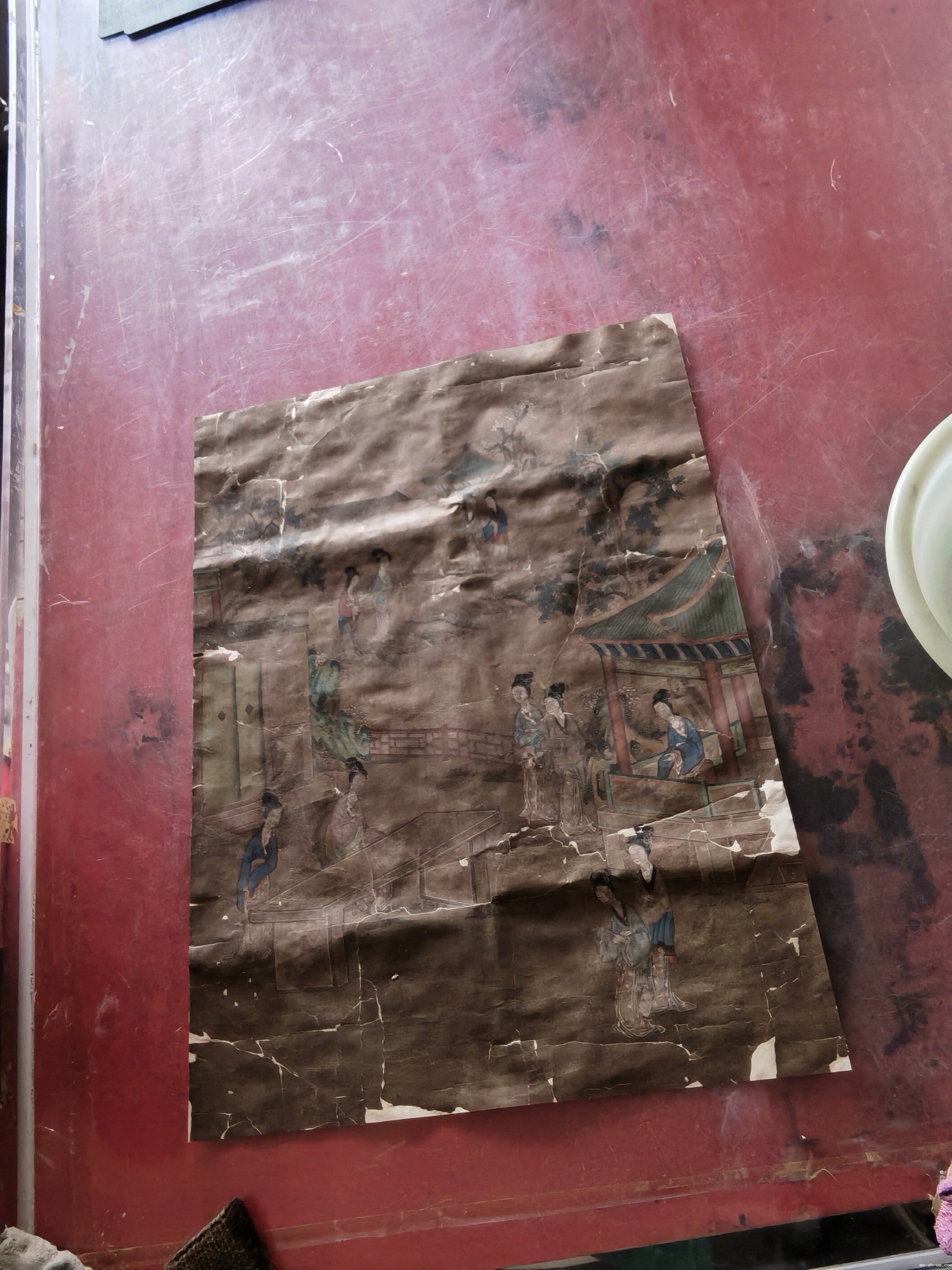 装裱完成 明代纸本人物画(左)、清代绢本花卉画
