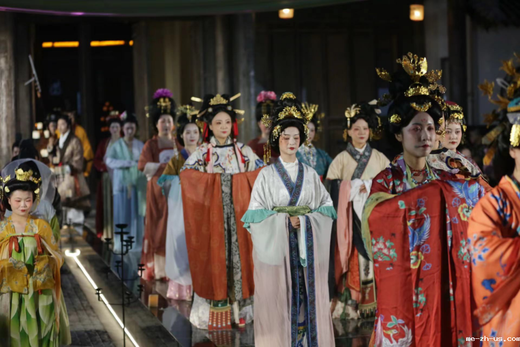 与此同时,本次活动还为与会者献上了一场震撼人心的《花开终南·汉服之夜》中华文脉复原展演。来自全国各地的50多位模特参与了本次展演,穿梭不同朝代时光,呈现出汉服的精致之美,向观众展示了汉服的多样性和魅力,彰显了中国传统服饰文化的辉煌与独特性。