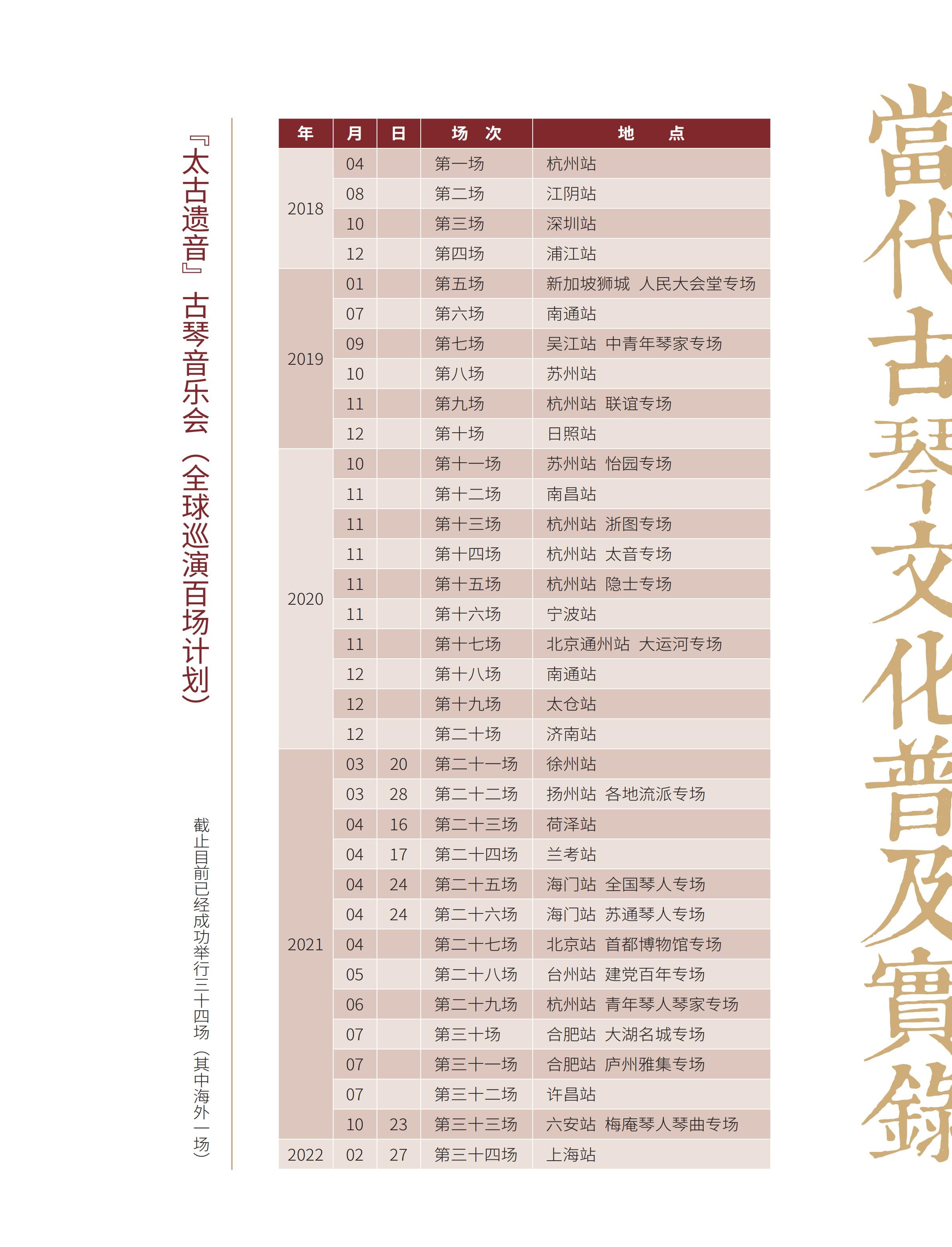 与琴委会同仁共同策划并成功在数十座城市举行“太古遗音—古琴音乐会(全球巡演百场计划)”。